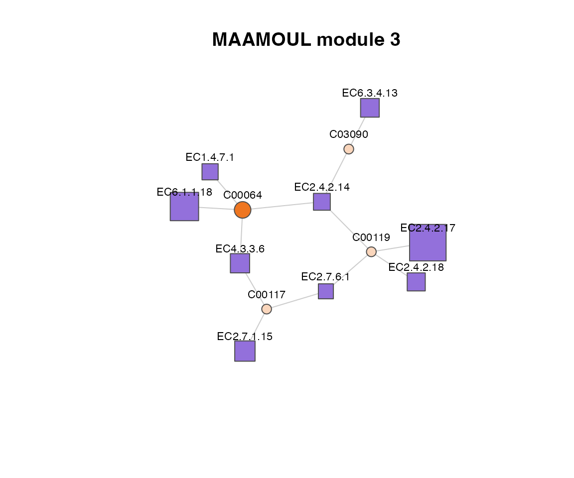 #> 7 EC6.1.1.7 TRUE 1 0.0007414908 ECVisualizing a module as a network